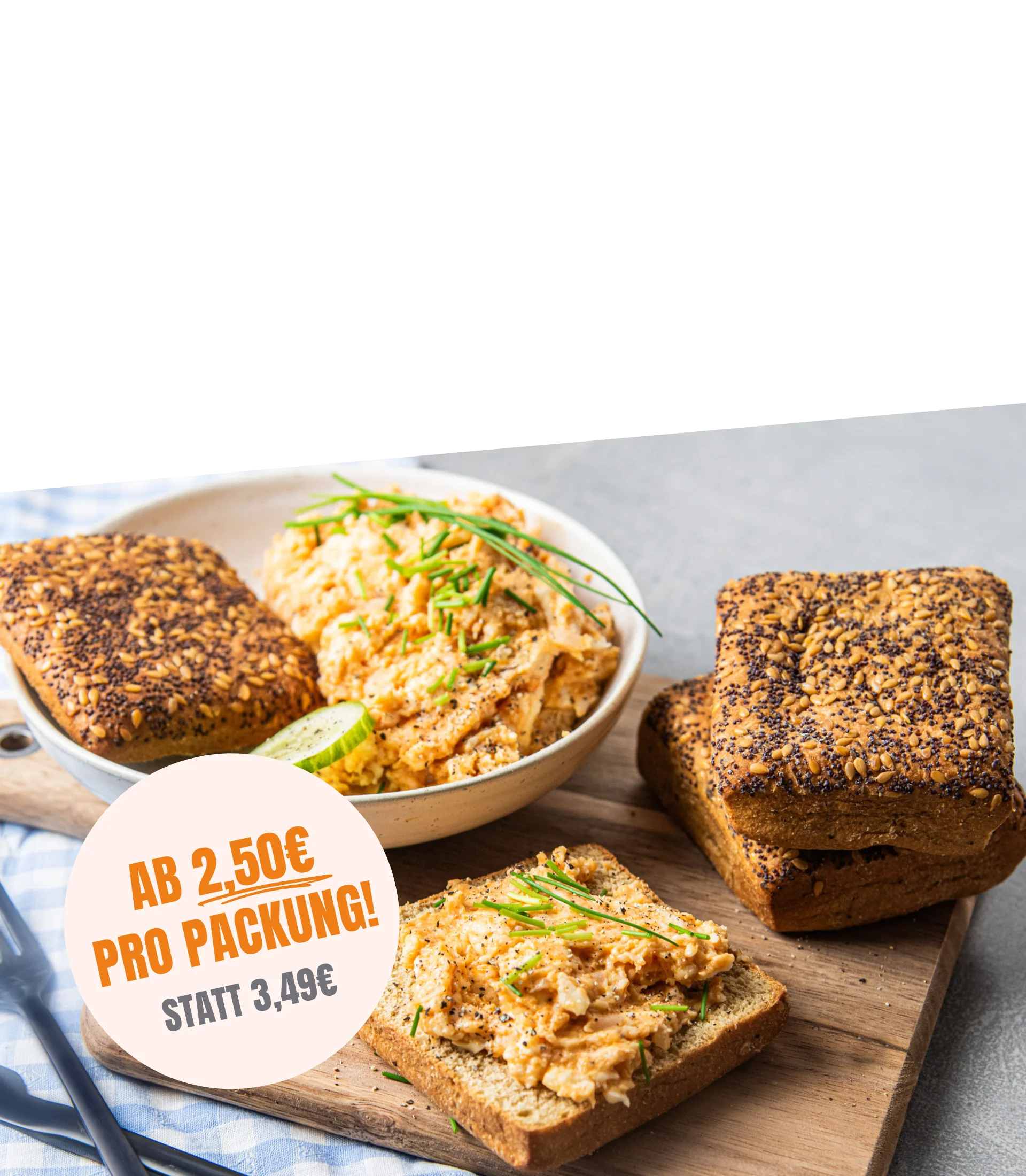 Du musst also auf nichts verzichten. STEINER´s Low Carb High Protein Toast schmeckt wie herkömmlicher Toast, hat aber 94% weniger Kohlenhydrate als herkömmlicher Toast und doppelt so viele Ballaststoffe wie ein Roggenvollkornbrot! Du musst also keine Körnerbrot essen, um deinen täglichen Ballaststoffbedarf zu decken.