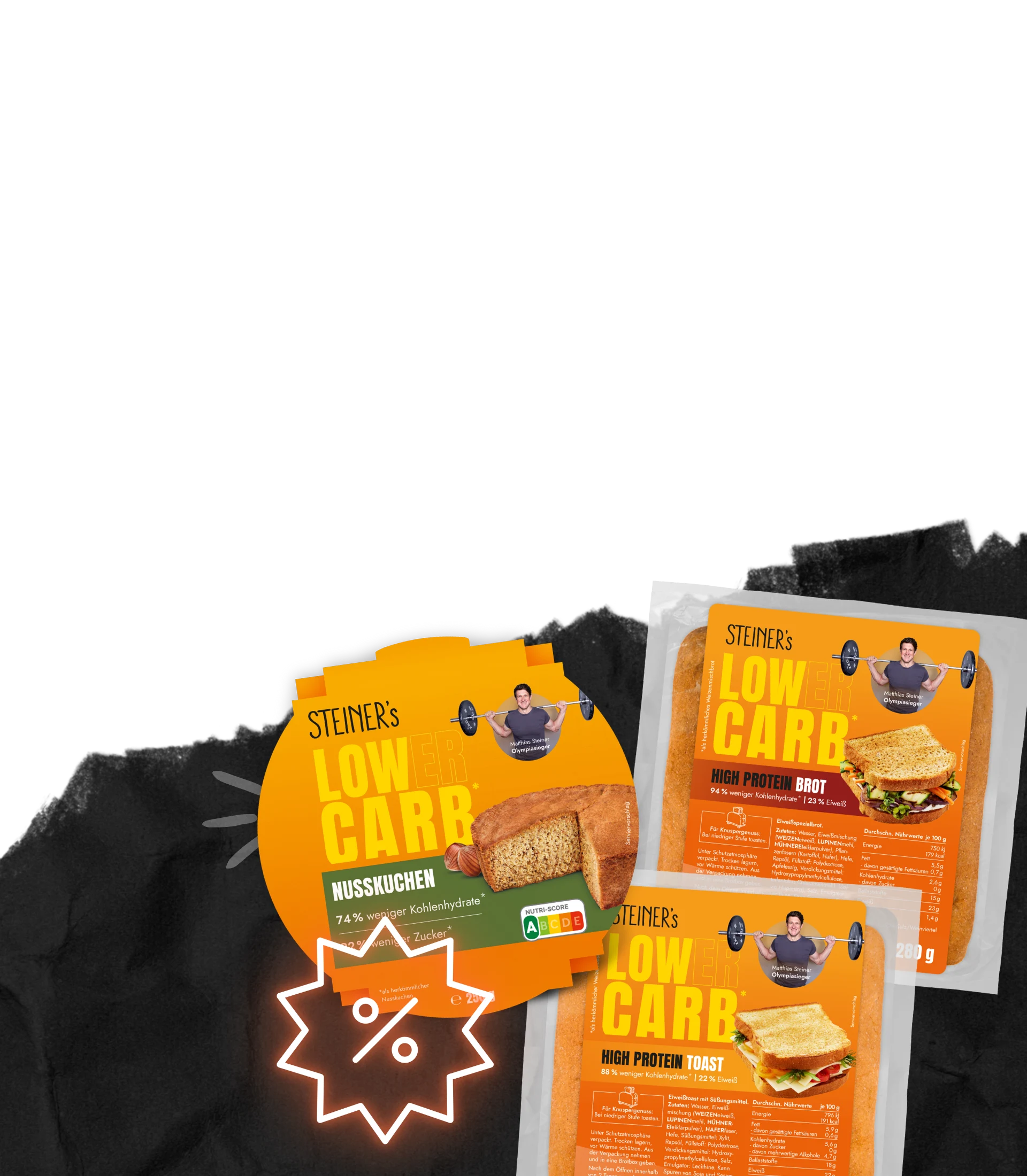 Matthias weiß aus vielen Gesprächen mit Diabetikern, dass eine Ernährungsumstellung besonders schwerfällt. Verzicht und Sich-zwingen-müssen geht nie lange gut. Er selbst hat 45 Kilo abgenommen und wollte in dieser Zeit auch nicht auf sein geliebtes Brot verzichten. Deshalb hat er Produkte entwickelt, die bis zu 99% weniger Kohlenhydrate haben als herkömmliche Weißmehlprodukte bei 100% Geschmack! Das war die Geburtsstunde von STEINER´s.